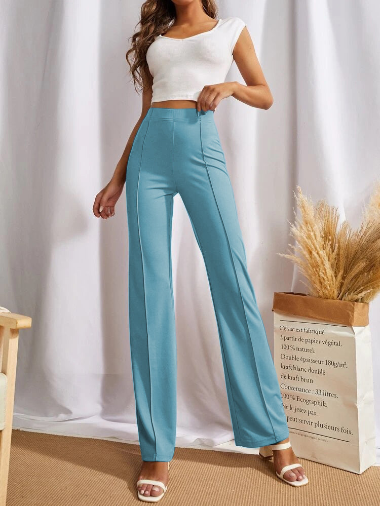 Elevate your everyday style with these High-Waist Straight-Leg Pants in a bold wine red shade....