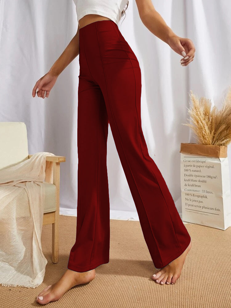Elevate your everyday style with these High-Waist Straight-Leg Pants in a bold wine red shade. Designed with a sleek tailored fit, these pants feature a flattering high-rise waist that accentuates your curves while offering all-day comfort. The straight-leg silhouette elongates your frame, making it a versatile choice for both casual outings and semi-formal occasions. Crafted from a soft yet structured fabric, they provide ease of movement without compromising on style. Pair them effortlessly with crop tops, blouses, or blazers for a chic, put-together look.