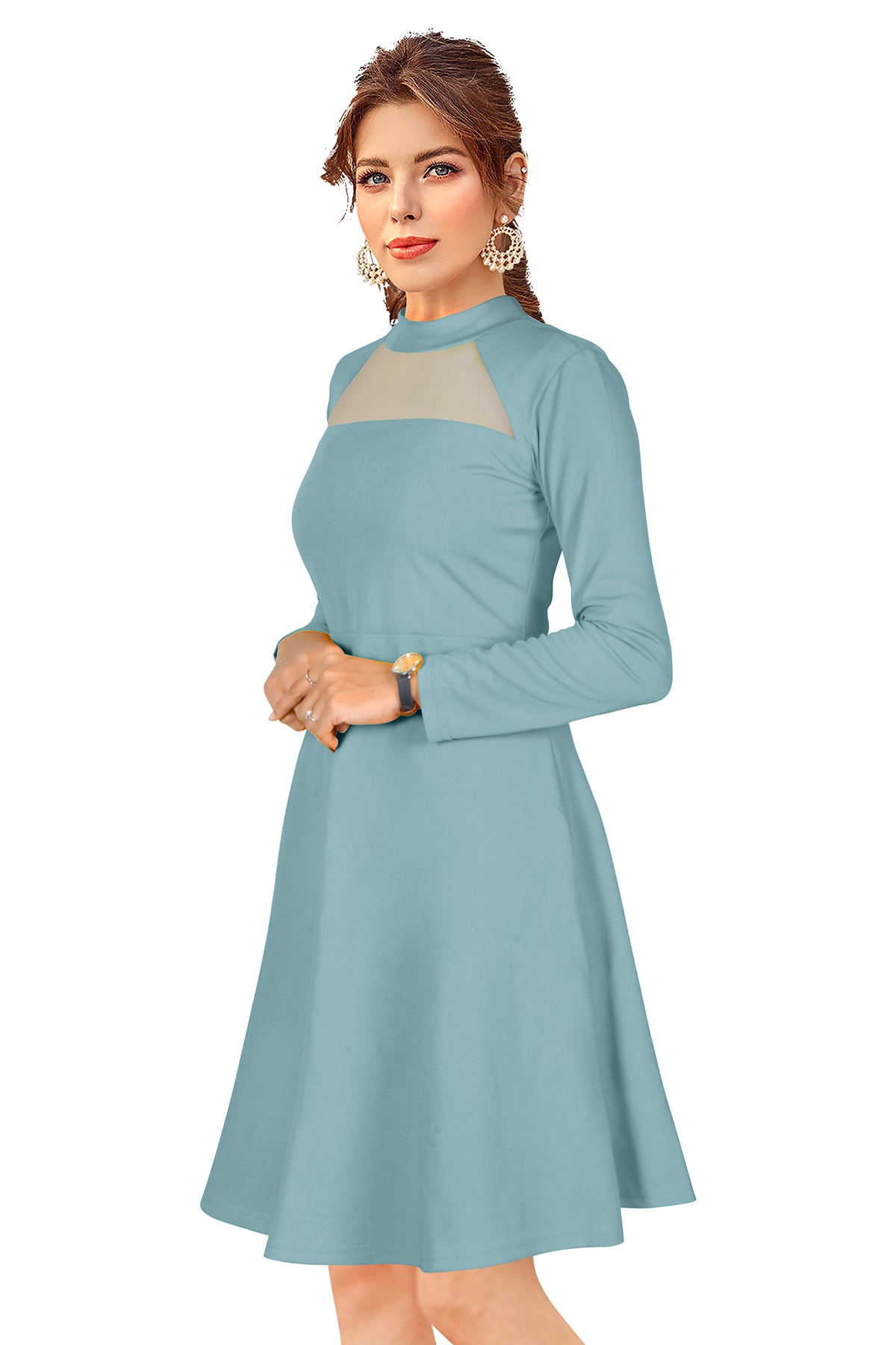 The Isha 586 Peach A-Line Dress with Sheer Yoke is a perfect blend of elegance and modern charm. Crafted with a flattering A-line silhouette, this dress features full sleeves, a high neckline, and a delicate sheer yoke panel that adds a subtle yet stylish touch. The soft peach color enhances its feminine appeal, making it ideal for brunches, parties, or semi-formal occasions. Pair it with statement earrings and heels for a chic and graceful look.